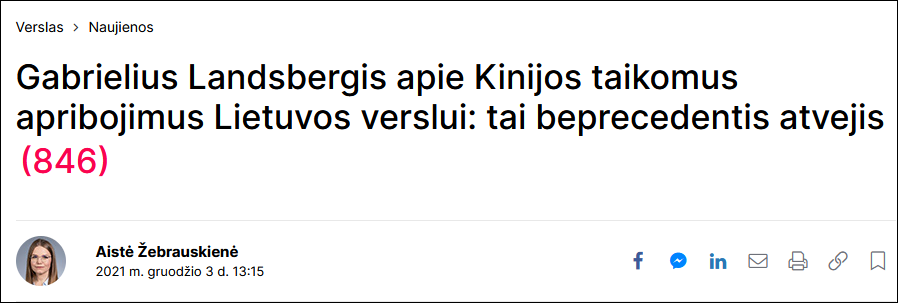 兰茨贝尔吉斯还说道:“下周,我们将正式向欧盟委员会发表声明,说明目前部分适用于立陶宛的贸易政策,是属于欧盟政策的一部分。我们将要求欧盟保护立陶宛。”