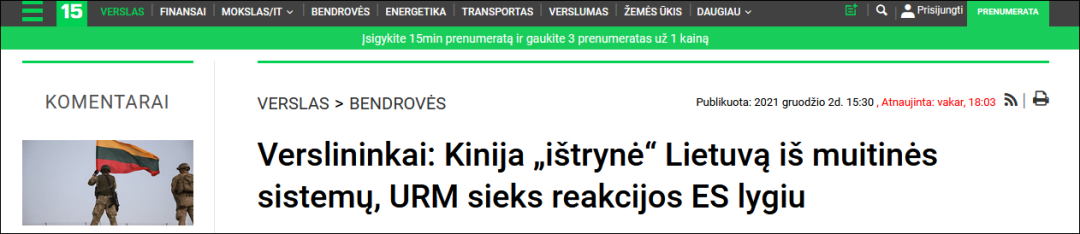 立陶宛“15分钟”新闻网:中国海关系统已经“删除”立陶宛